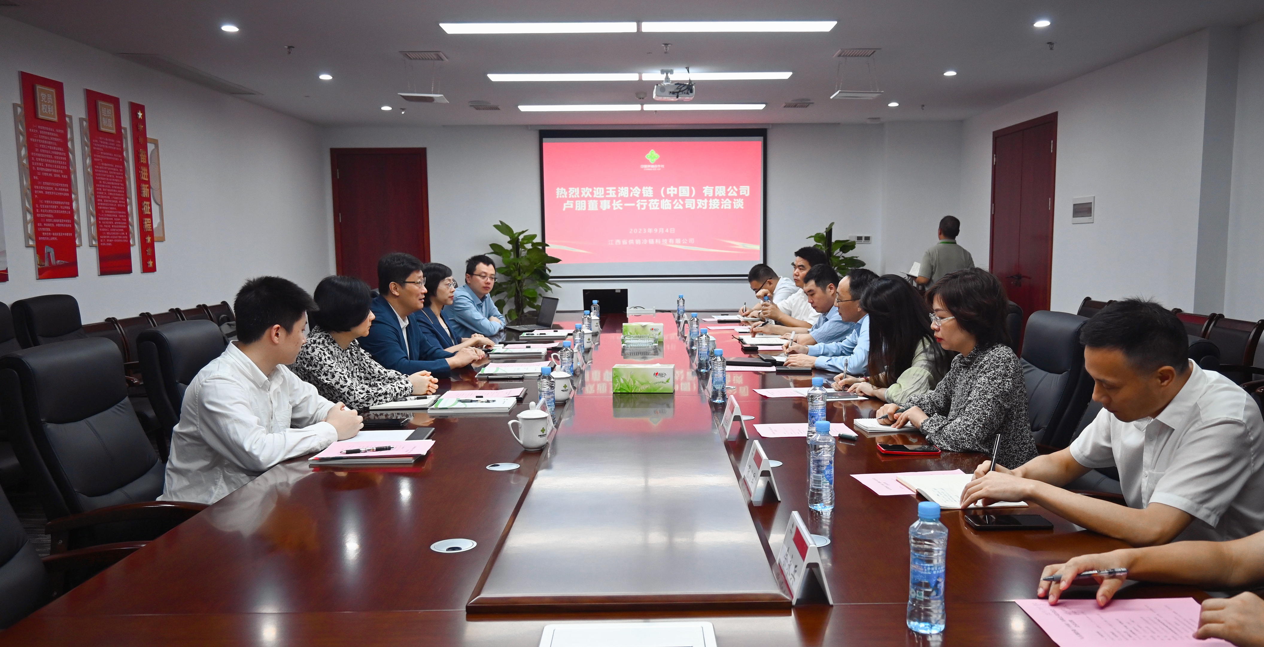 9月4日,卢朋率队赴江西省冷链公司,与江西省供销集团总经理、江西省冷链公司董事长文名波进行深入交流,洽谈业务合作。