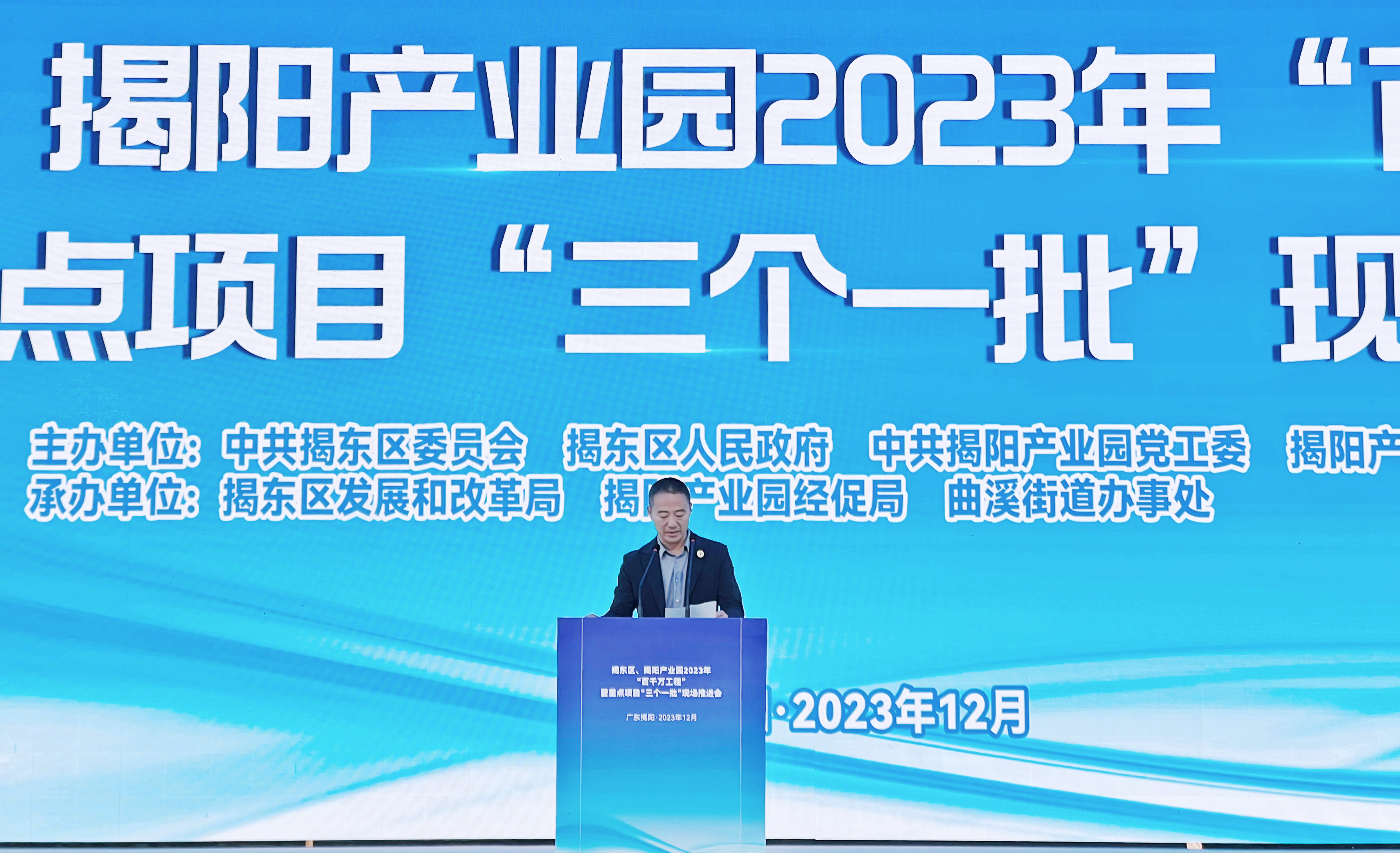揭东区委书记、揭阳产业园党工委书记梁柱华,区委副书记、区长、揭阳产业园党工委副书记、管委会主任修文带领揭东区和揭阳产业园党政领导列席活动并主持。