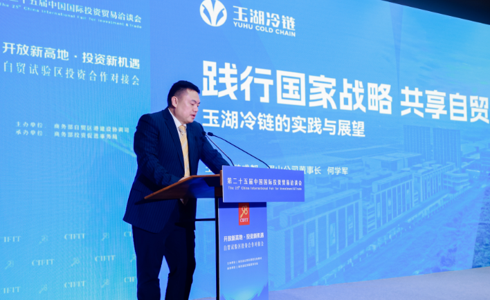 探花国产在线观看冷链成都公司、眉山公司董事长何学军代表公司出席活动,他在演讲中提到:作为四川自贸试验区青白江铁路港片区的重点91探花视频在线观看,探花国产在线观看冷链(成都)交易园区自2021年落户以来,已建设发展成为集展示展销、智能仓储、供应链金融、跨境贸易等功能于一体的数智化交易园区,目前已吸引600余家行业龙头91探花视频在线观看入驻,形成了极具活力的产业生态。