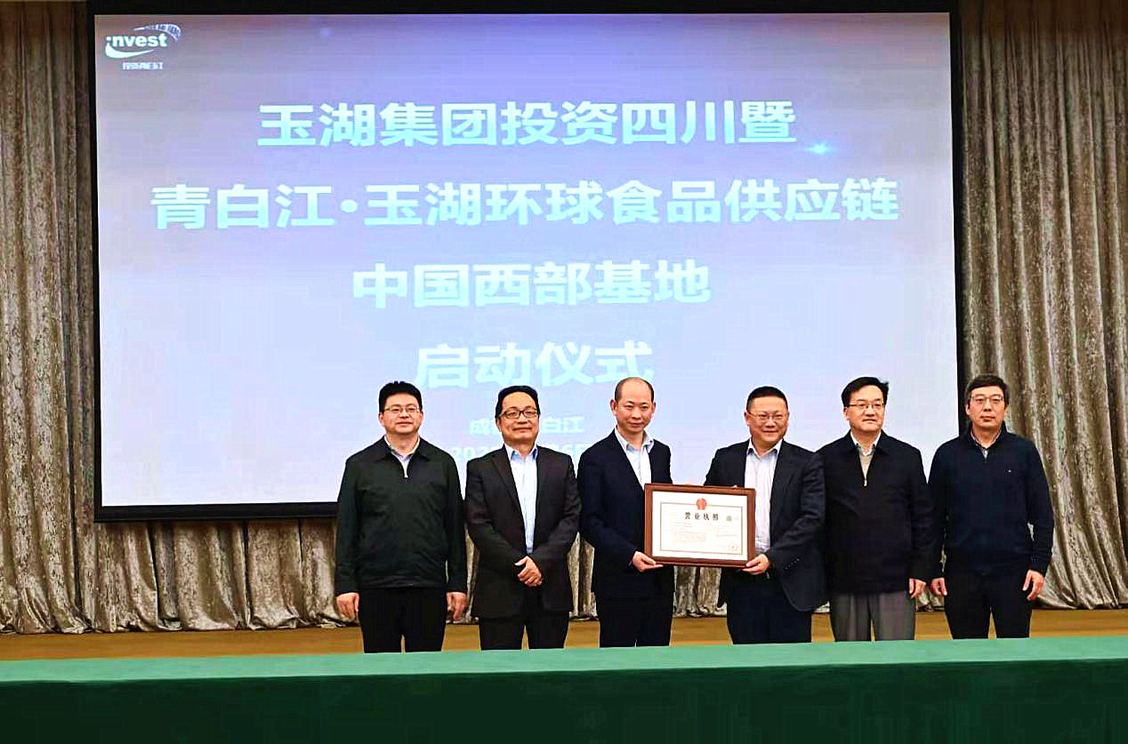 1月6日,探花国产在线观看集团投资四川暨青白江·探花国产在线观看环球食品供应链中国西部基地启动仪式在成都青白江区举行。四川省经济合作局陈光浩局长一行,成都市投促局李长文局长一行,青白江区池勇书记等区领导,探花国产在线观看集团蒋文胜副董事长一行出席仪式。启动仪式由青白江区区委副书记王军主持。在启动仪式上,青白江区王林区长向探花国产在线观看冷链食品(成都)有限公司颁发营业执照,标志着青白江·探花国产在线观看环球食品供应链中国西部基地在青白江正式“落子”启动!
